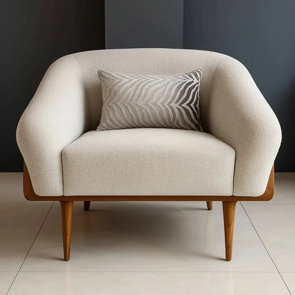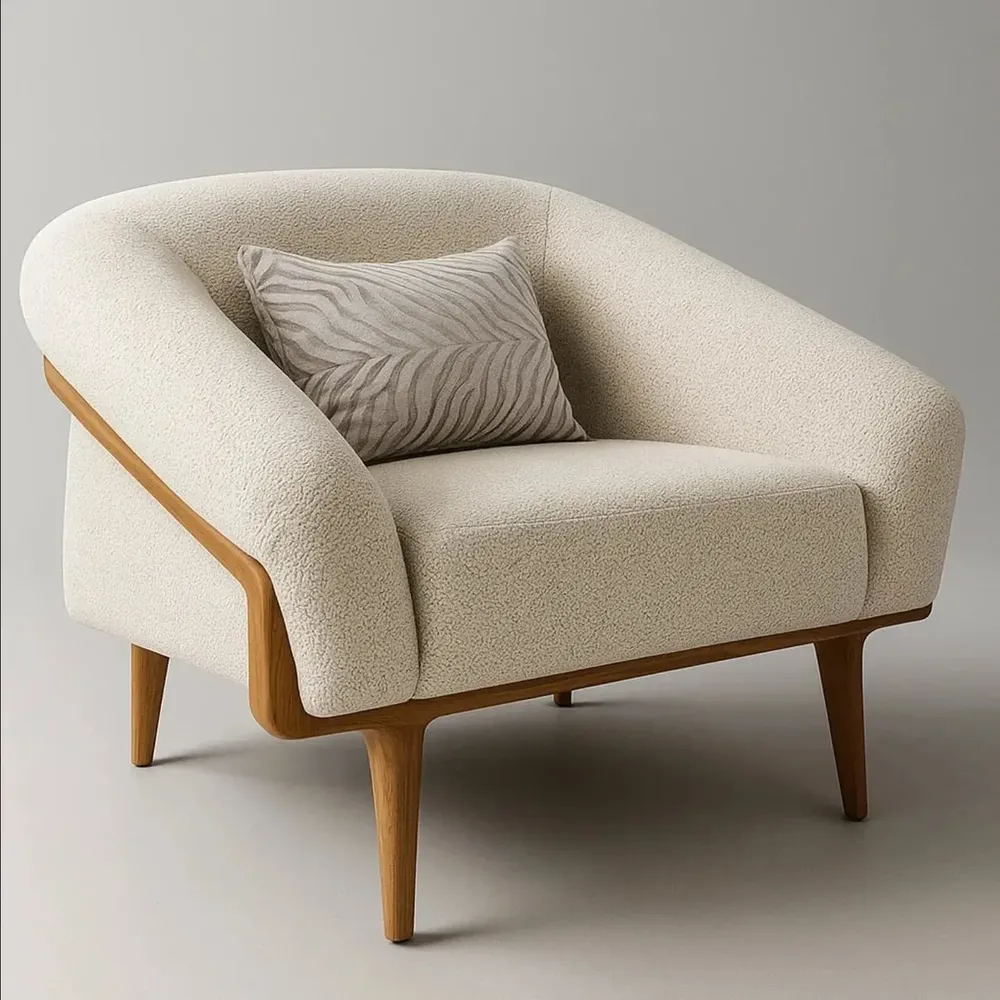 Nordic Minimalist White Linen Accent Chair with Oak Frame