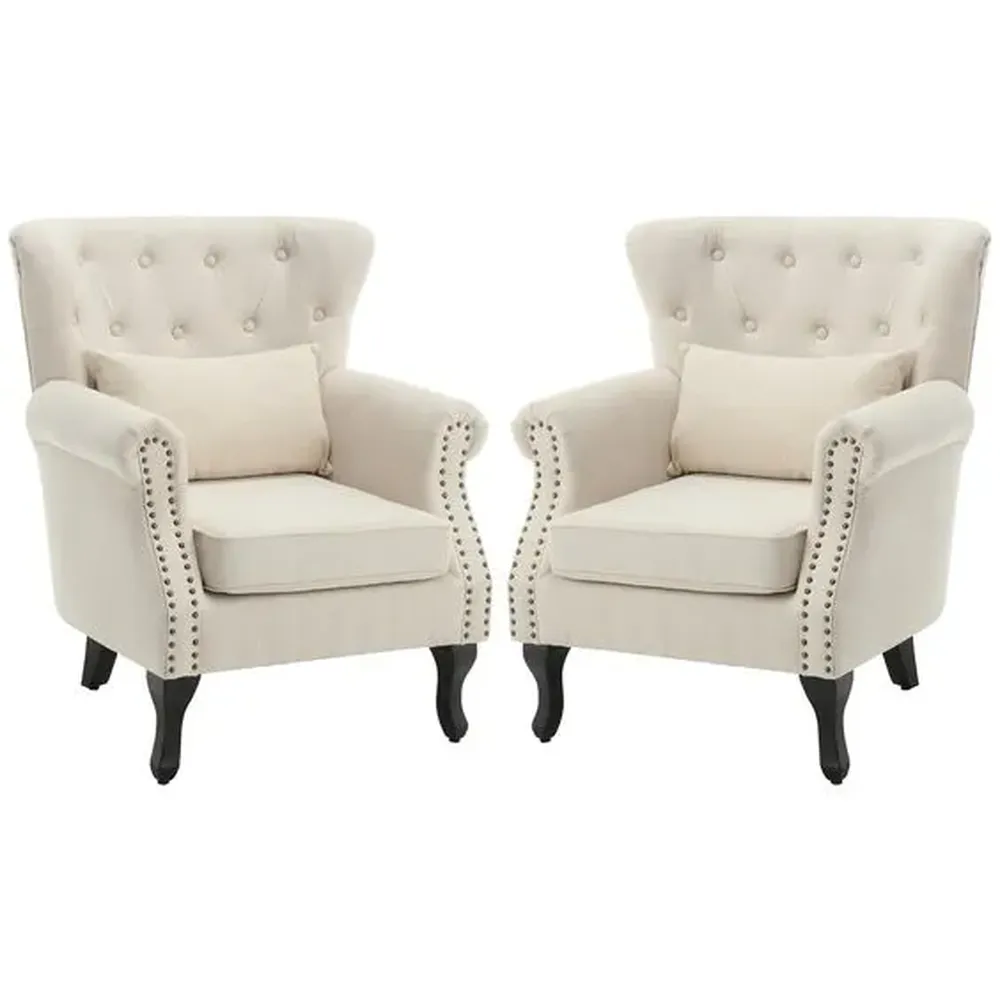 Slate Grey Tufted Wingback Chairs with Brass Tips