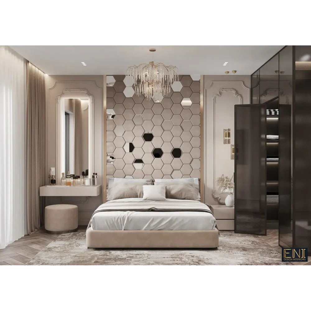 Alabaster Royale Turkish Deco Wall Bed with Gold Chevron Trim