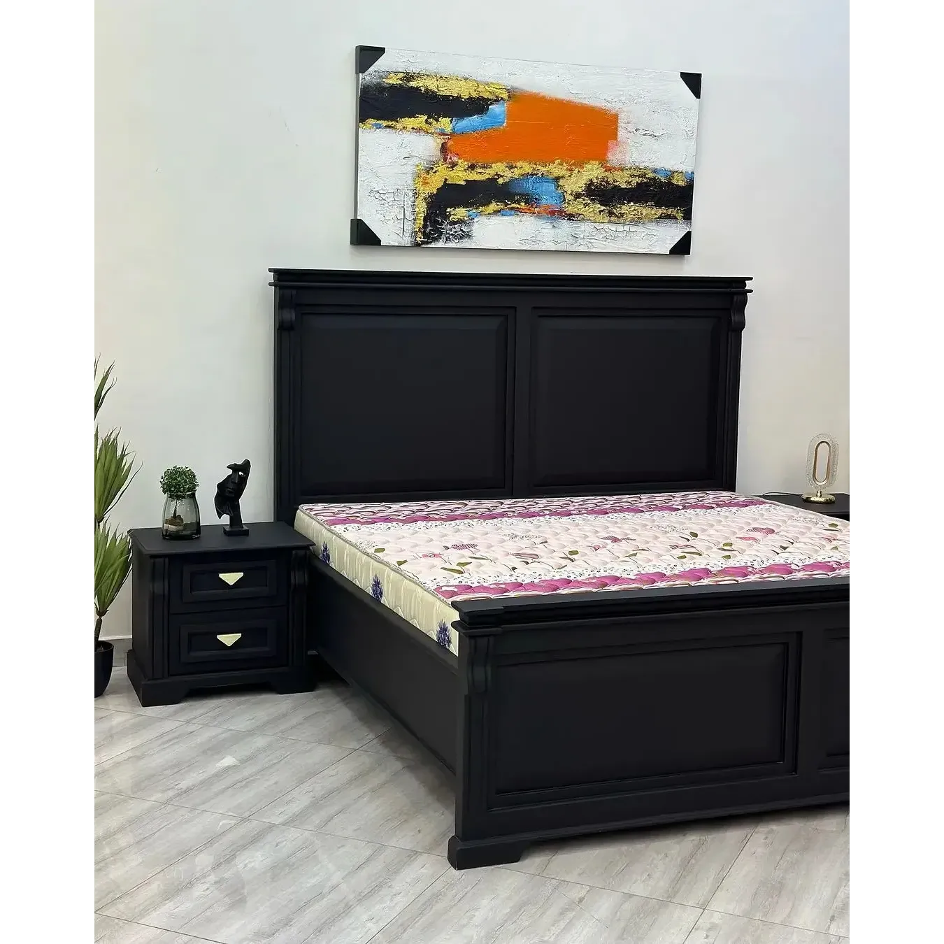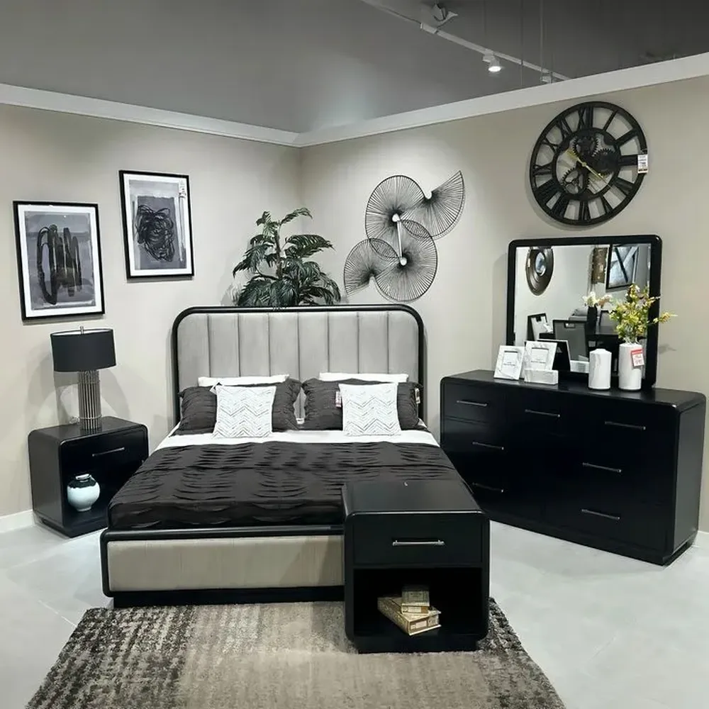 Contemporary Black & Grey Deco Bed with Vertical Tufted Headboard
