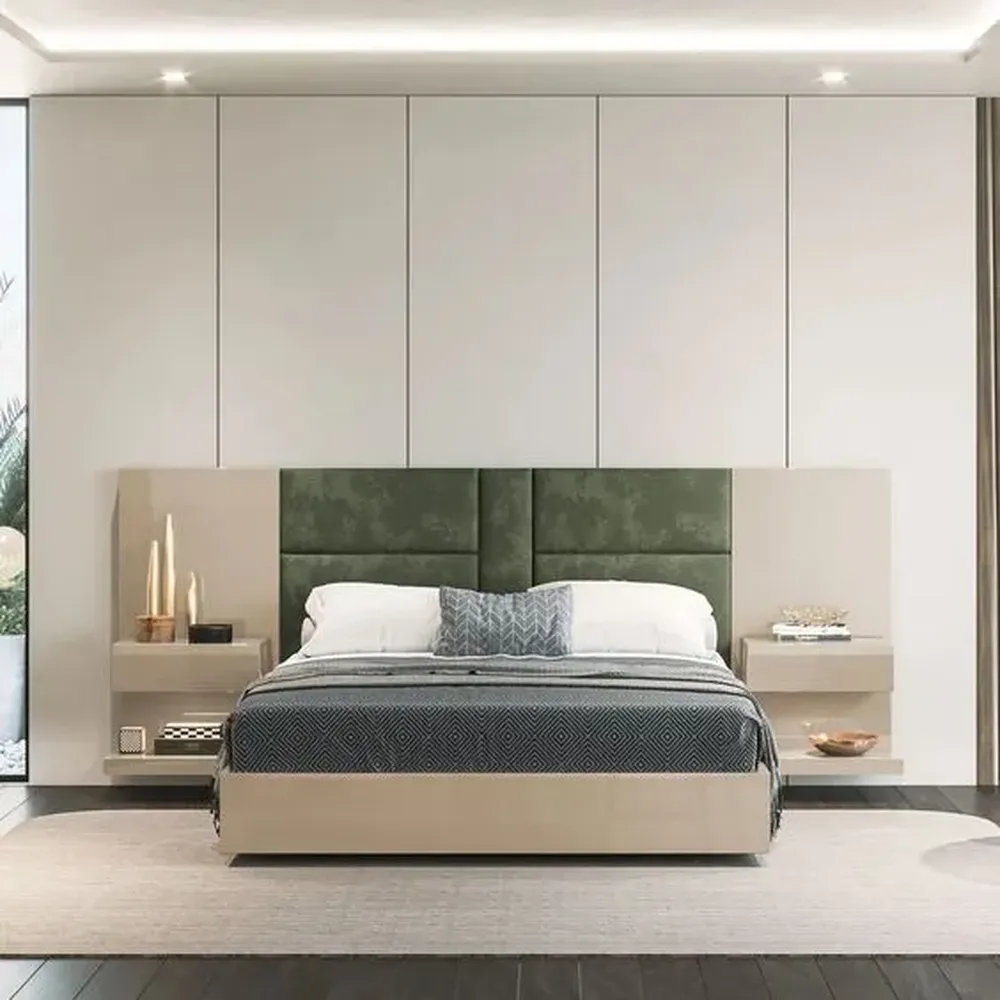 Avant-Garde White Deco Bed with Geometric Headboard – Abstract Design