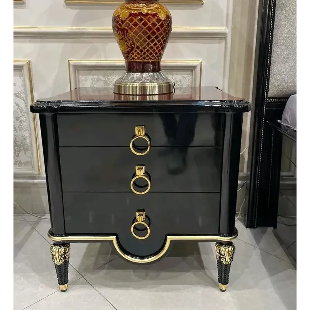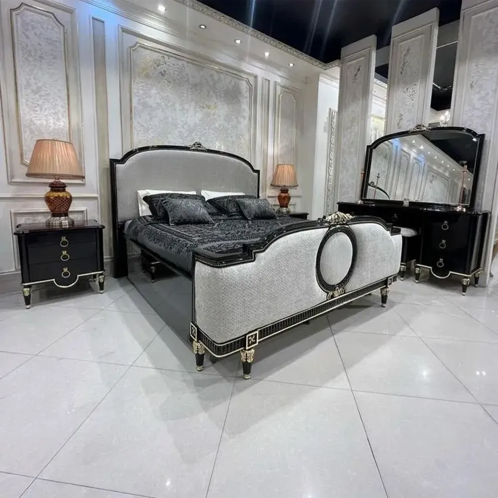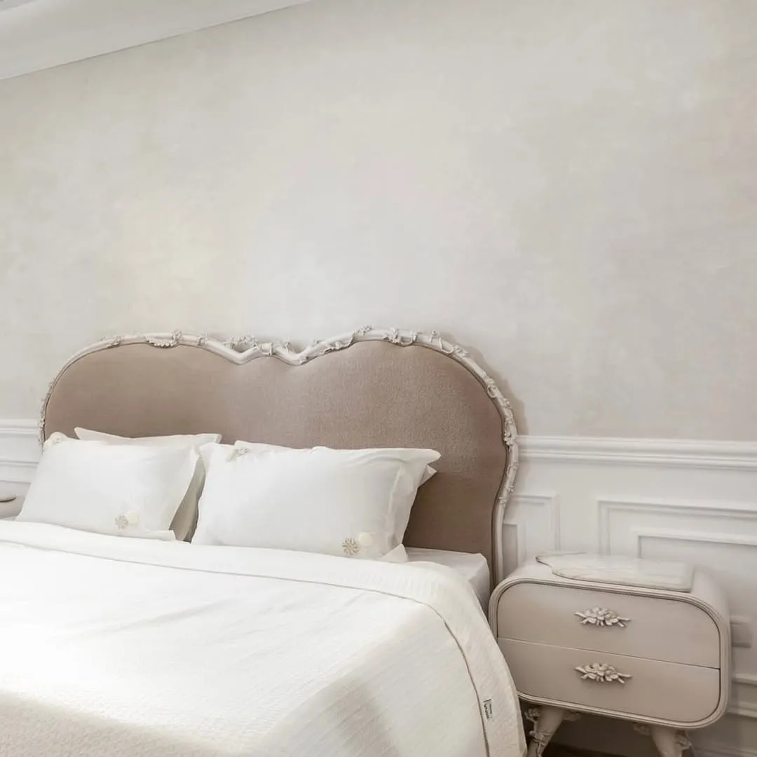 Luxury Gold Deco Bed with Lavender Velvet Carved Headboard