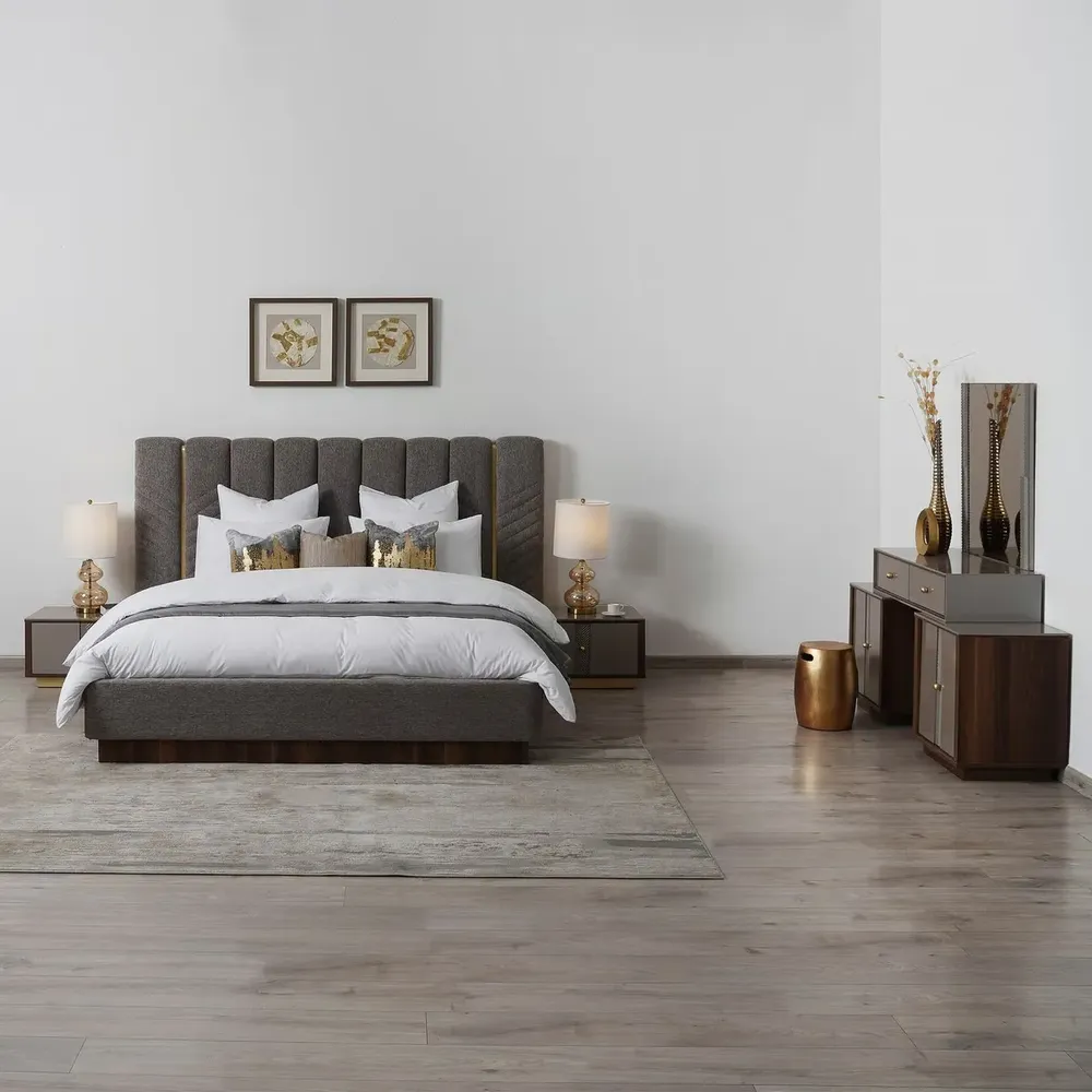 Luxury Turkish Grey Fabric Bed with Gold Vertical Paneling
