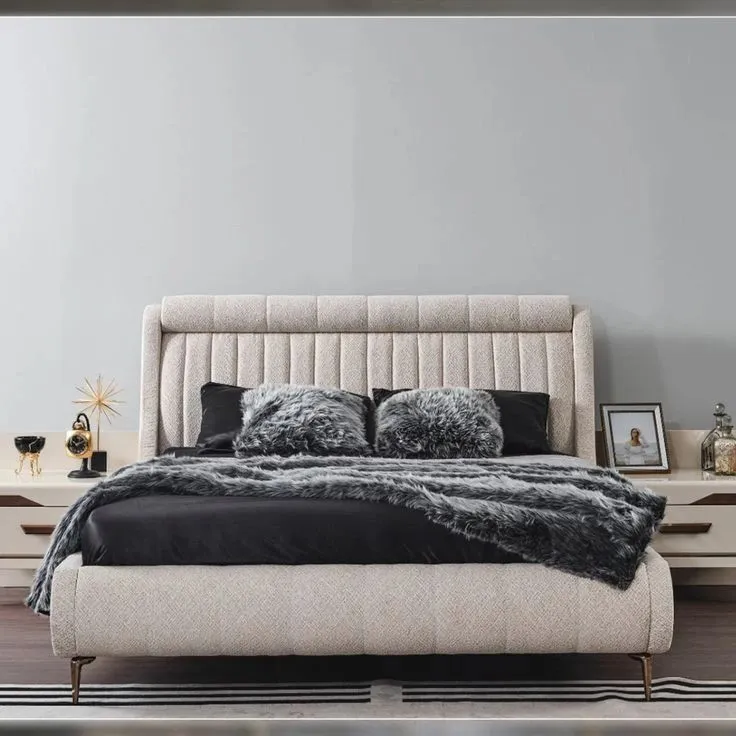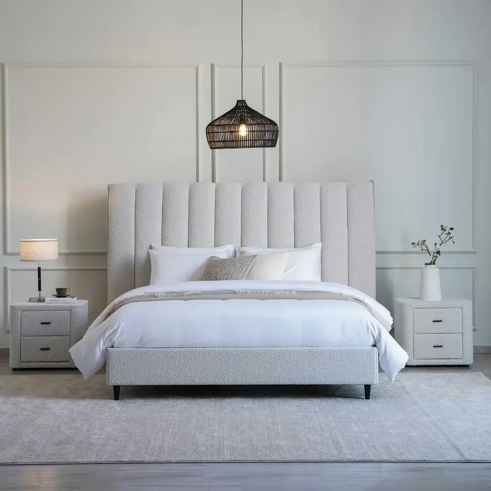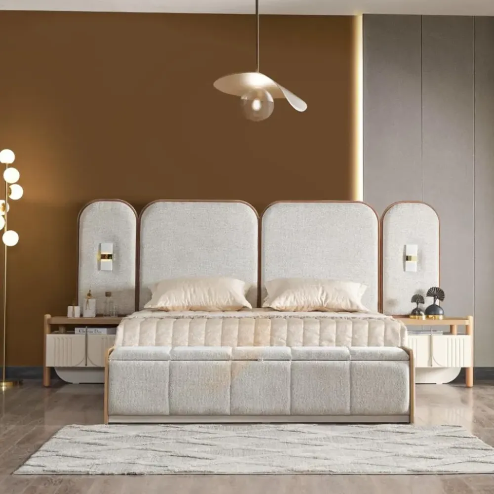 Nordic Curved Trio Fabric Bed with Timber Trim