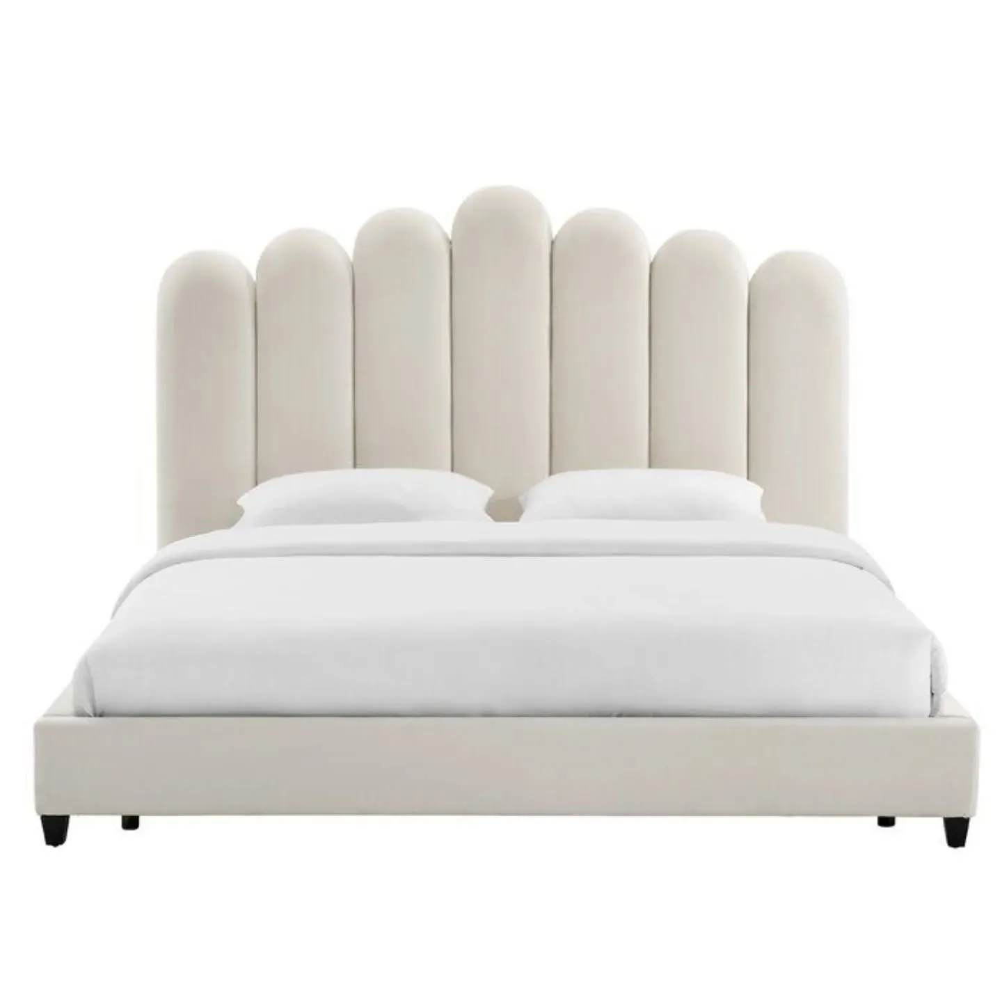 Serene Boucle Cloud Bed with Arc Headboard and Textured Linens