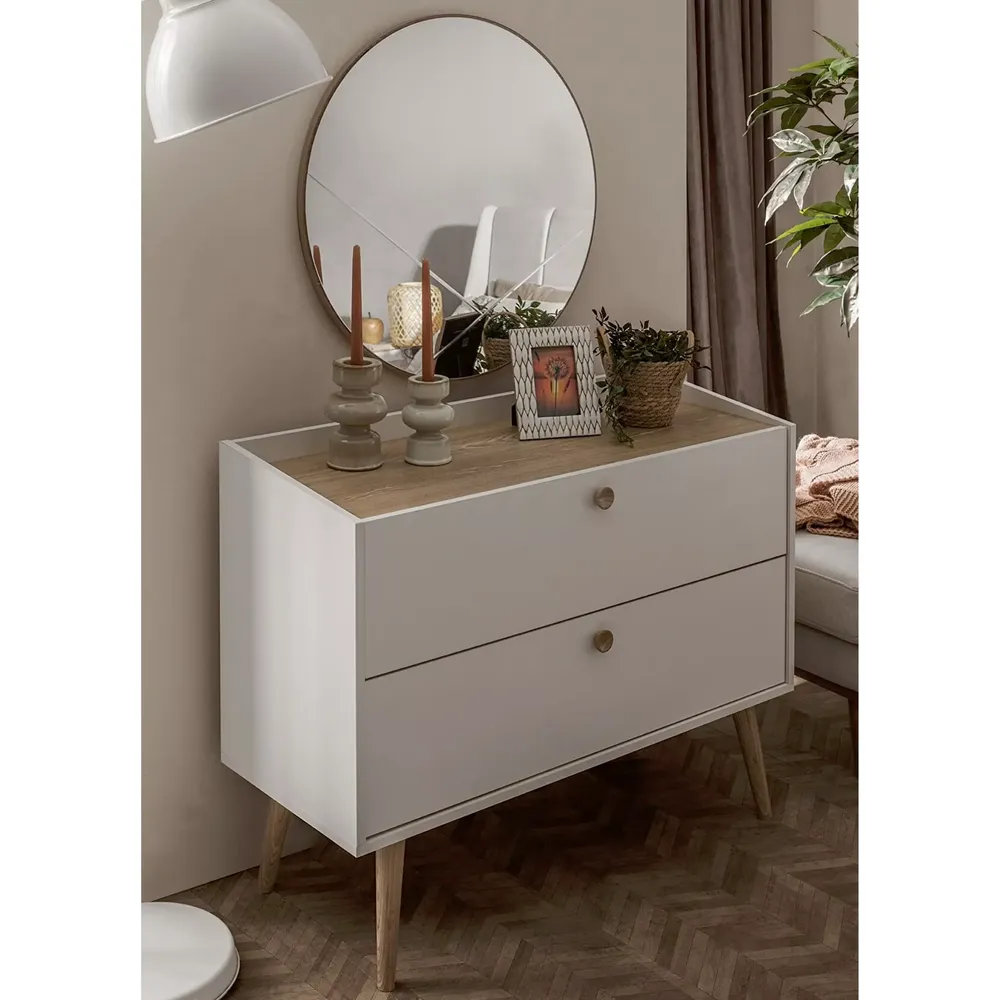 Modern Two-Drawer Dressing Console with Wood Grain Top & Tapered Legs