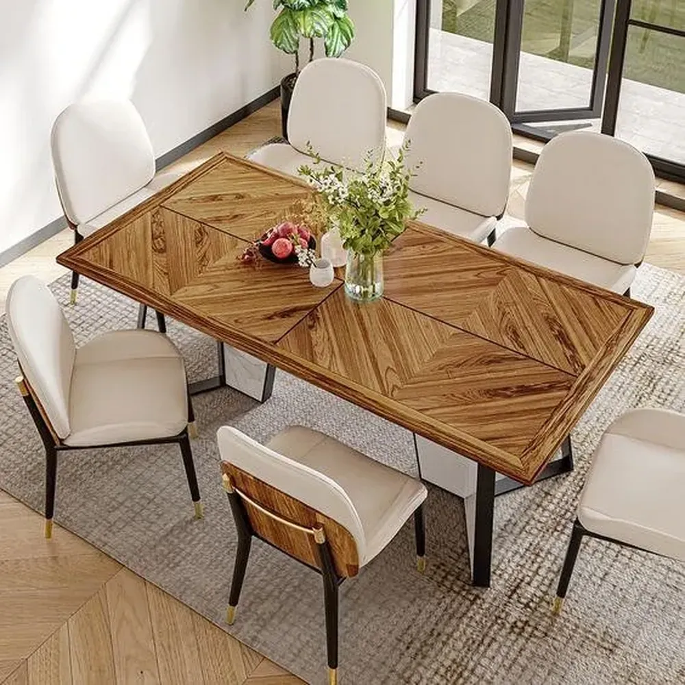 Artisan Chevron Wood Dining Set with Cream Leather Rite