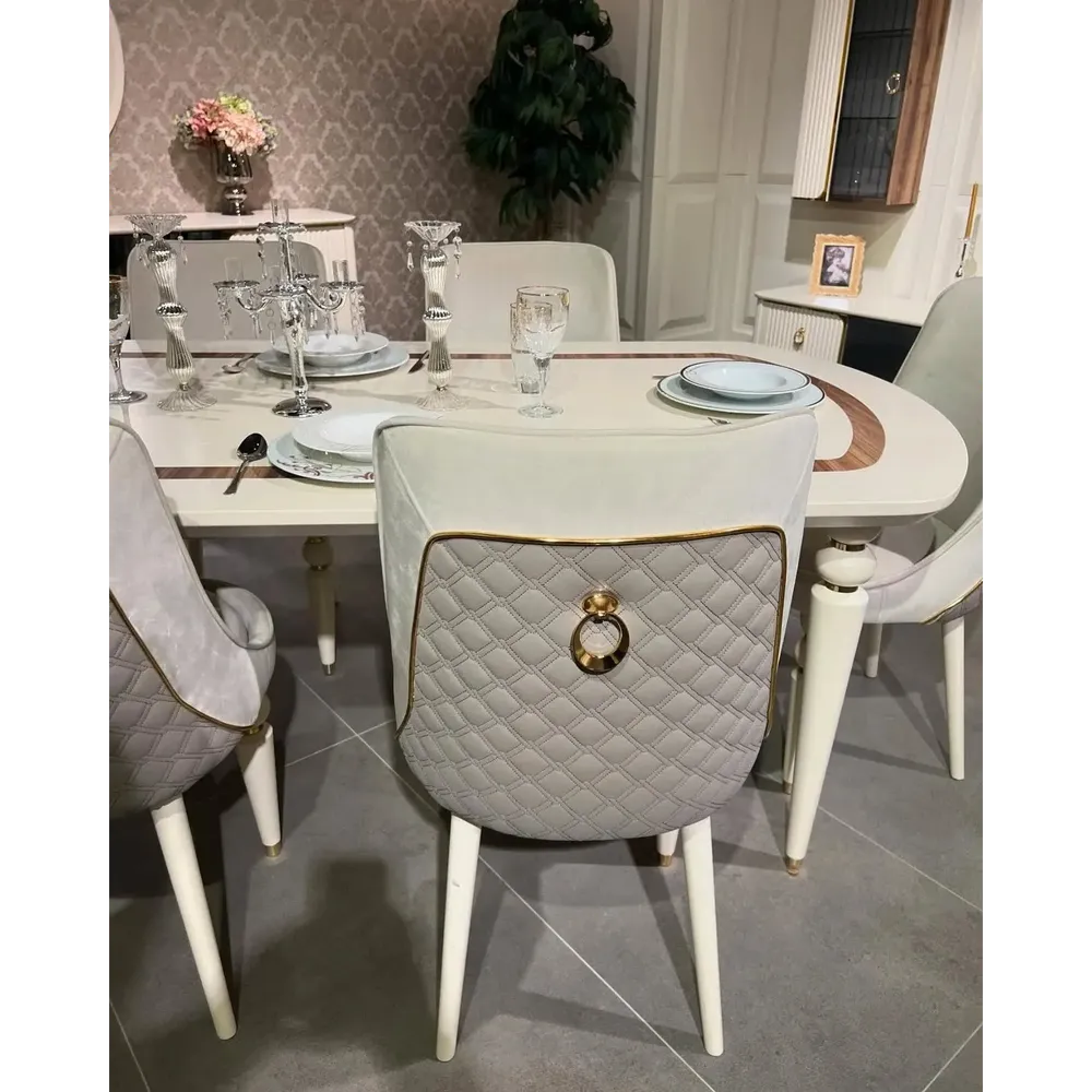 Azure Turkish Marble Oval Table with Gold Accents