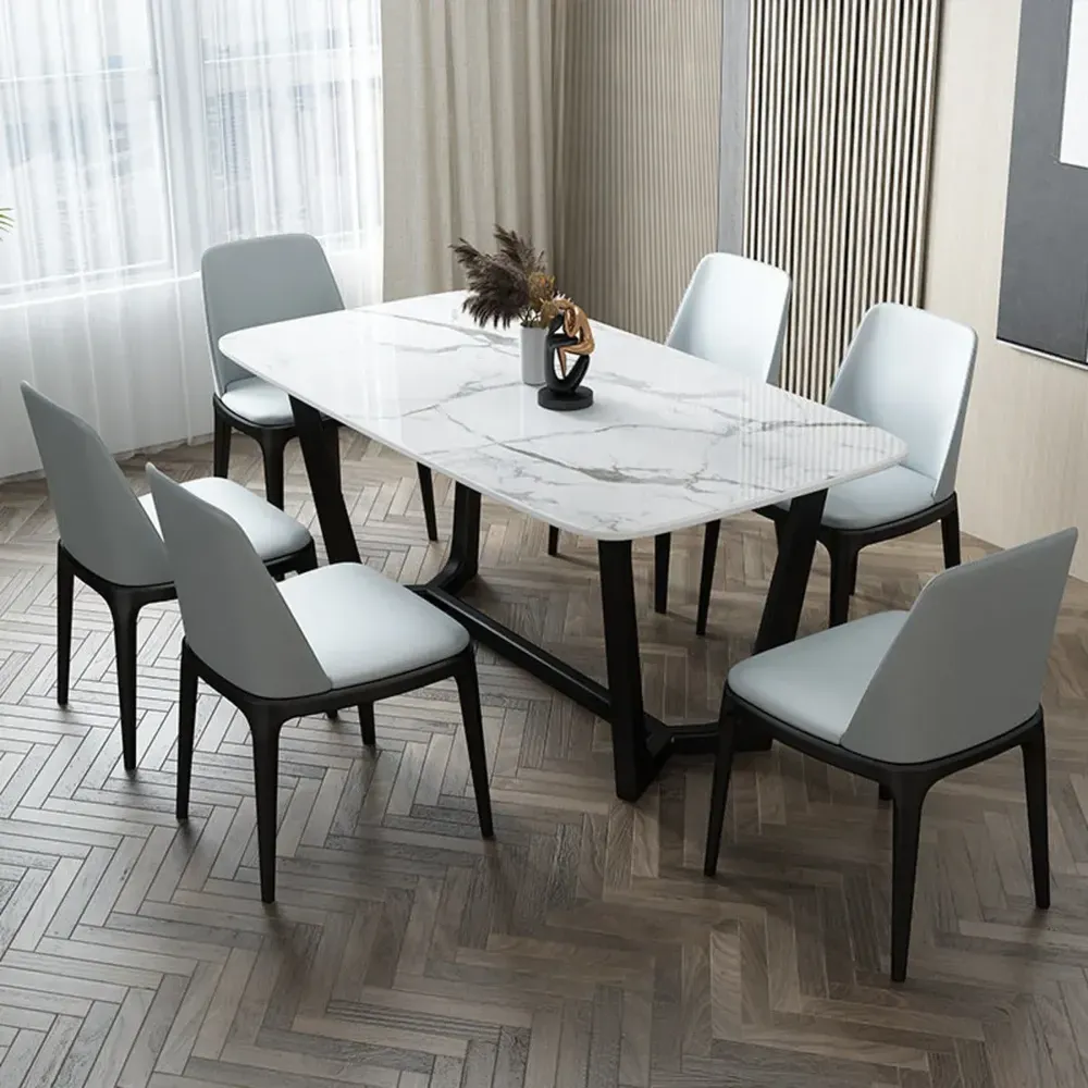 Minimalist Ebony Glass Dining Set with Cream Stools