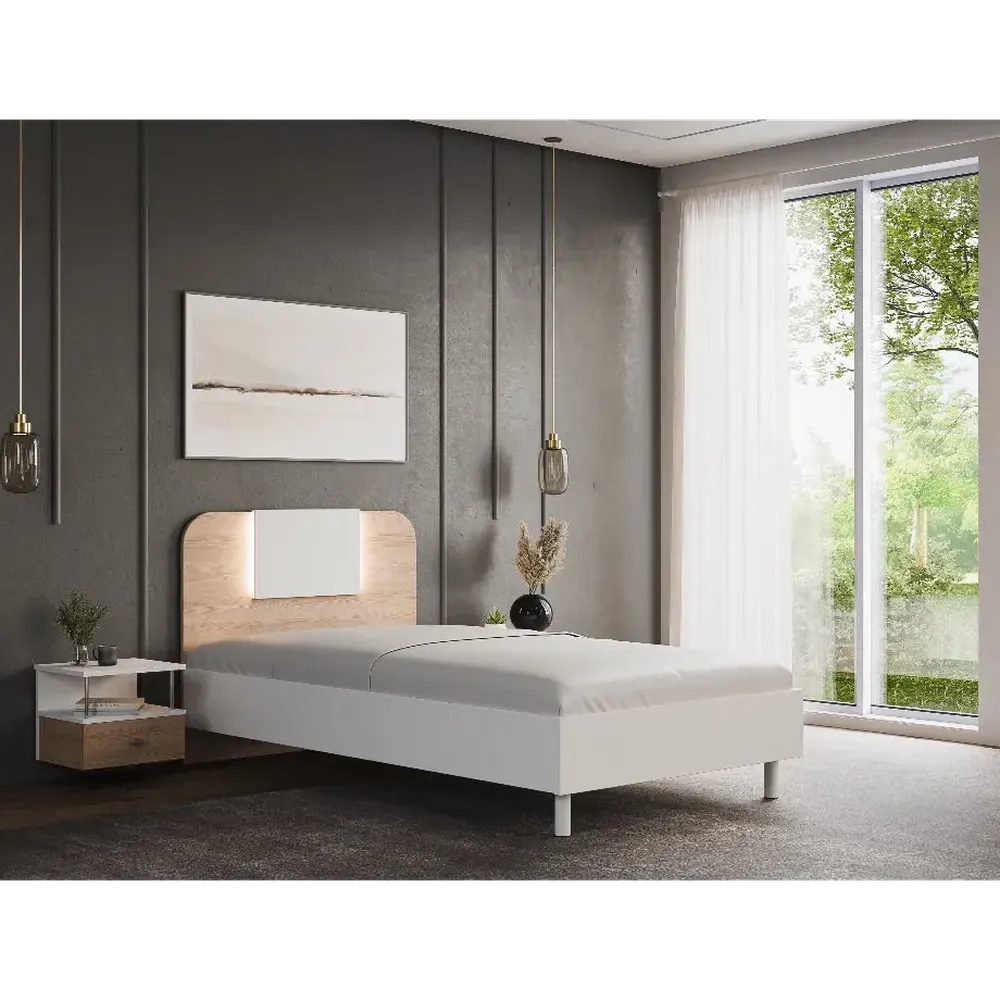 Nordic Style Single Bed for Kids & Teens with Grey Two-Tone Headboard & Hairpin Legs