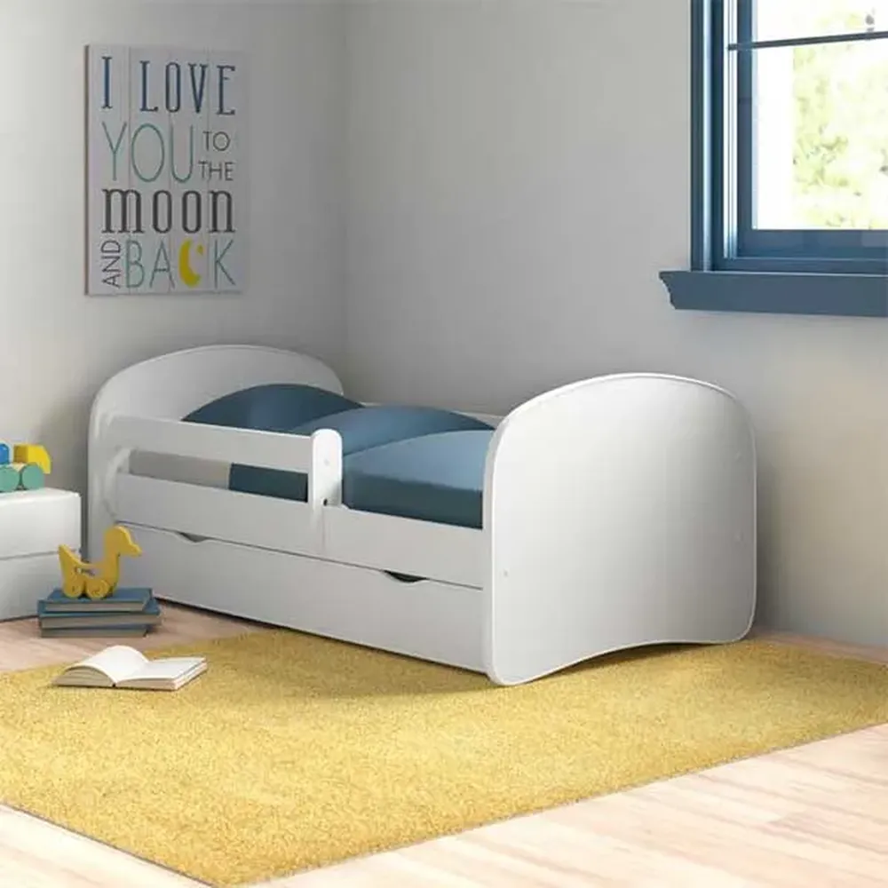 Classic White Single Bed with Protective Guardrails & Integrated Storage – Child Friendly
