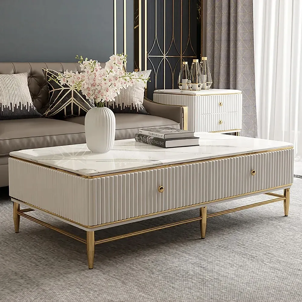 Nordic Marble Top Multi-Storage Grey Coffee Table