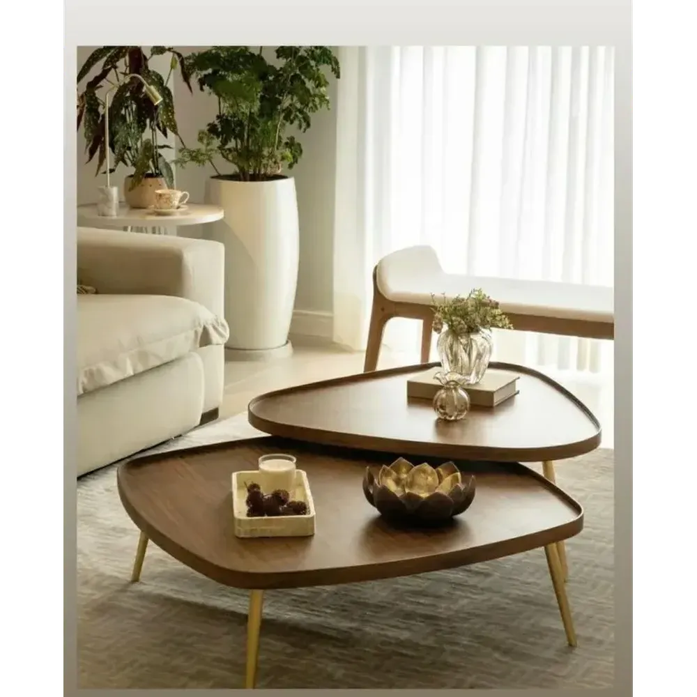 Scandi-Modern Two-Tone Coffee Table with tural Wood Drawers & Gold Legs