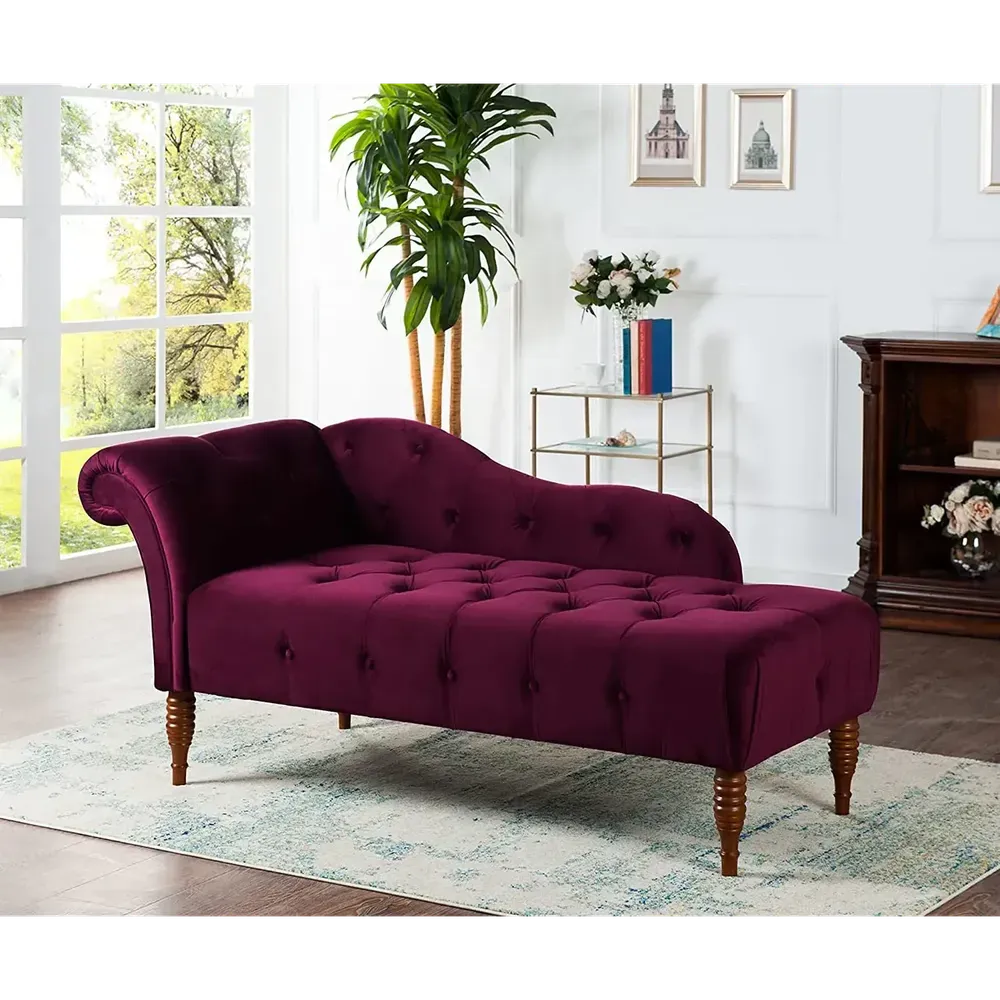 Regal Plum Velvet Chaise with Turned Wood Legs