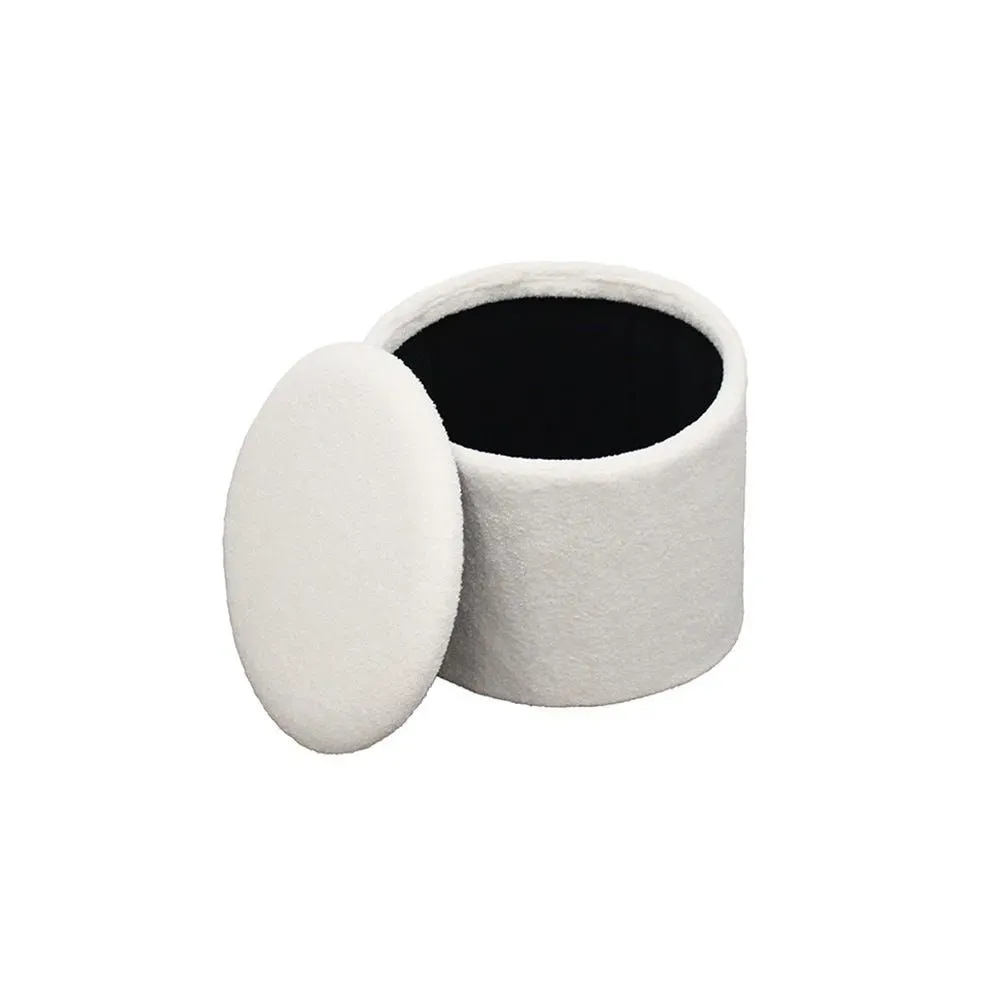 Hidden Storage Compartment Circular Beige Velvet Pouffe