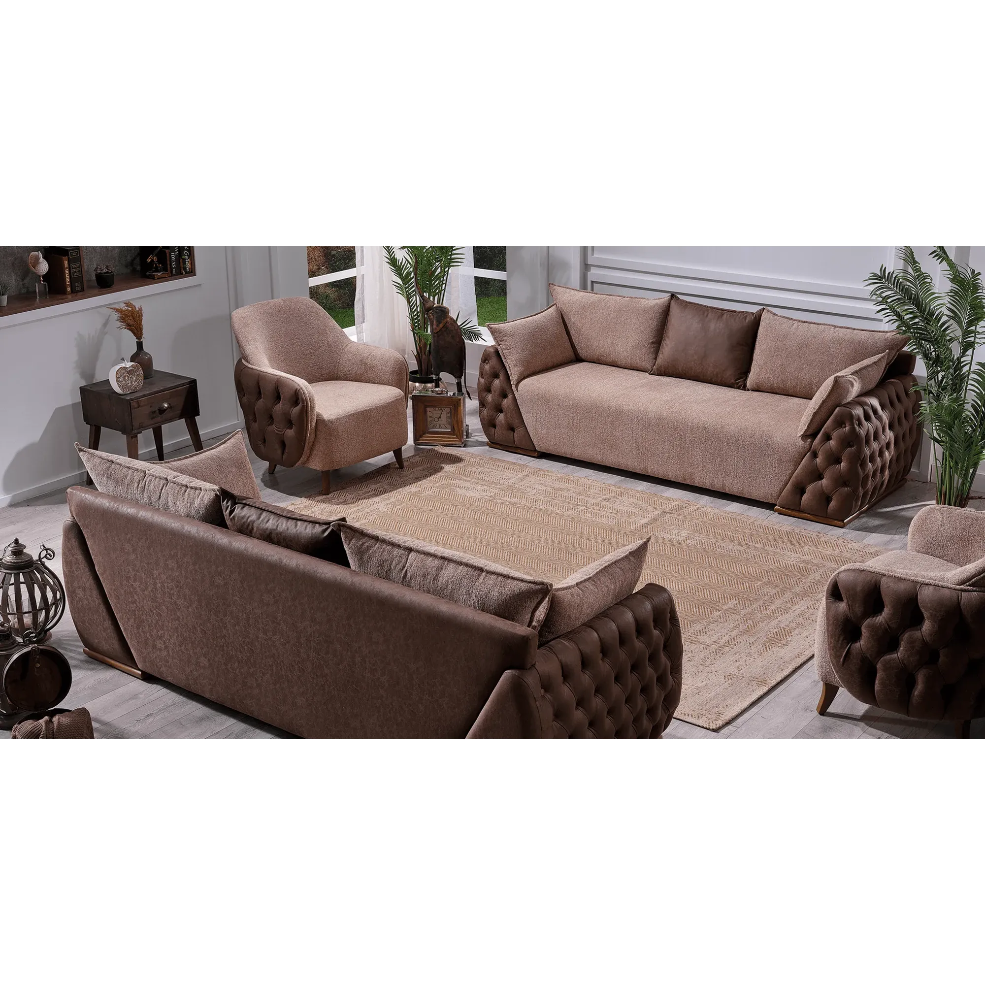 Chocolate Brown Tufted Chesterfield Sofa Set