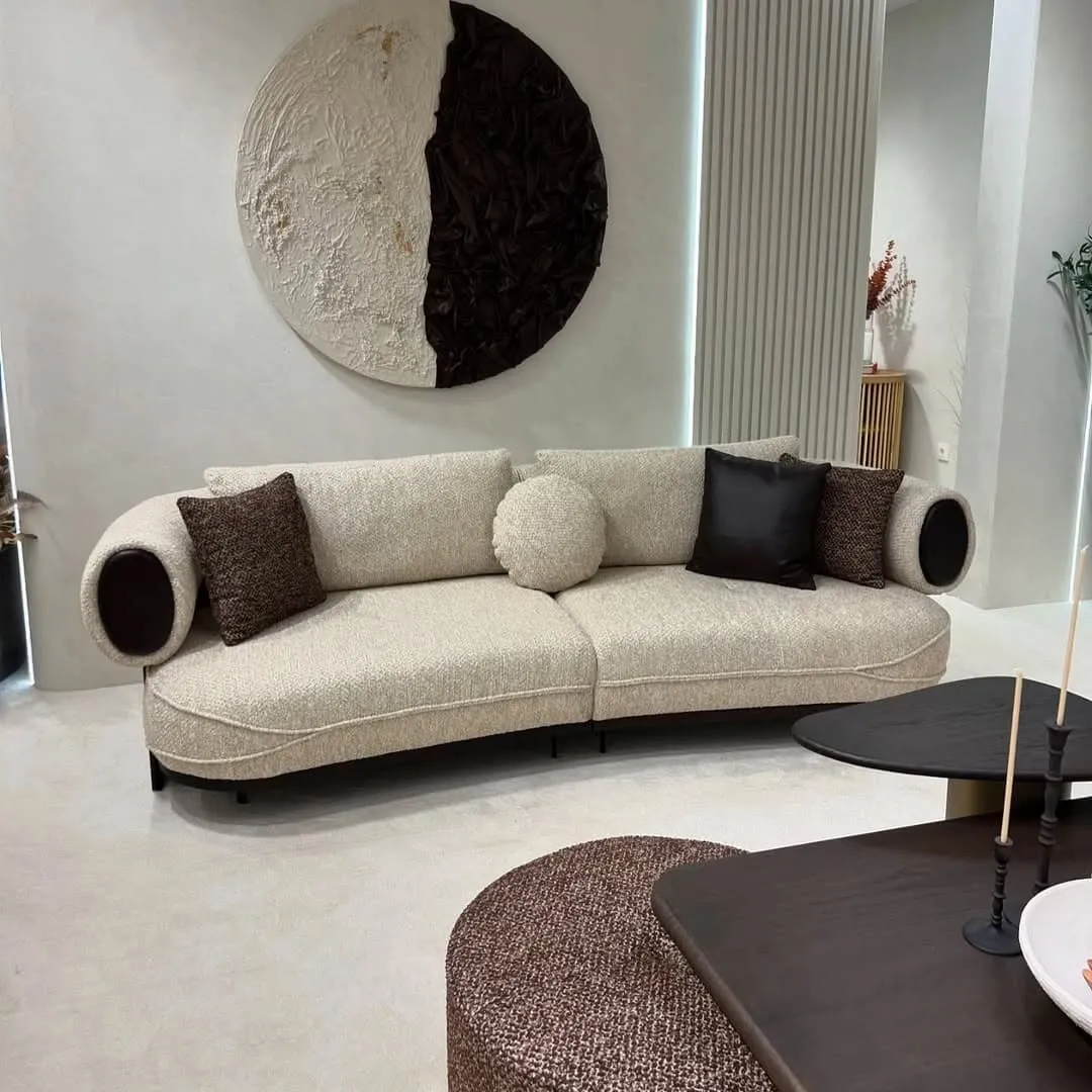 Arctic Velvet Curved Turkish White Sofa