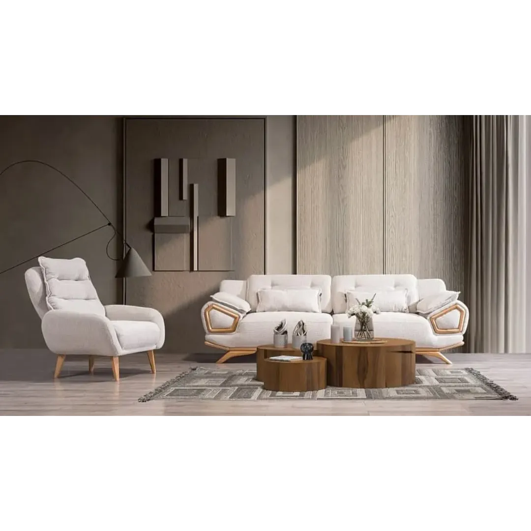 Alpine Velvet Royal Turkish White Sofa Set