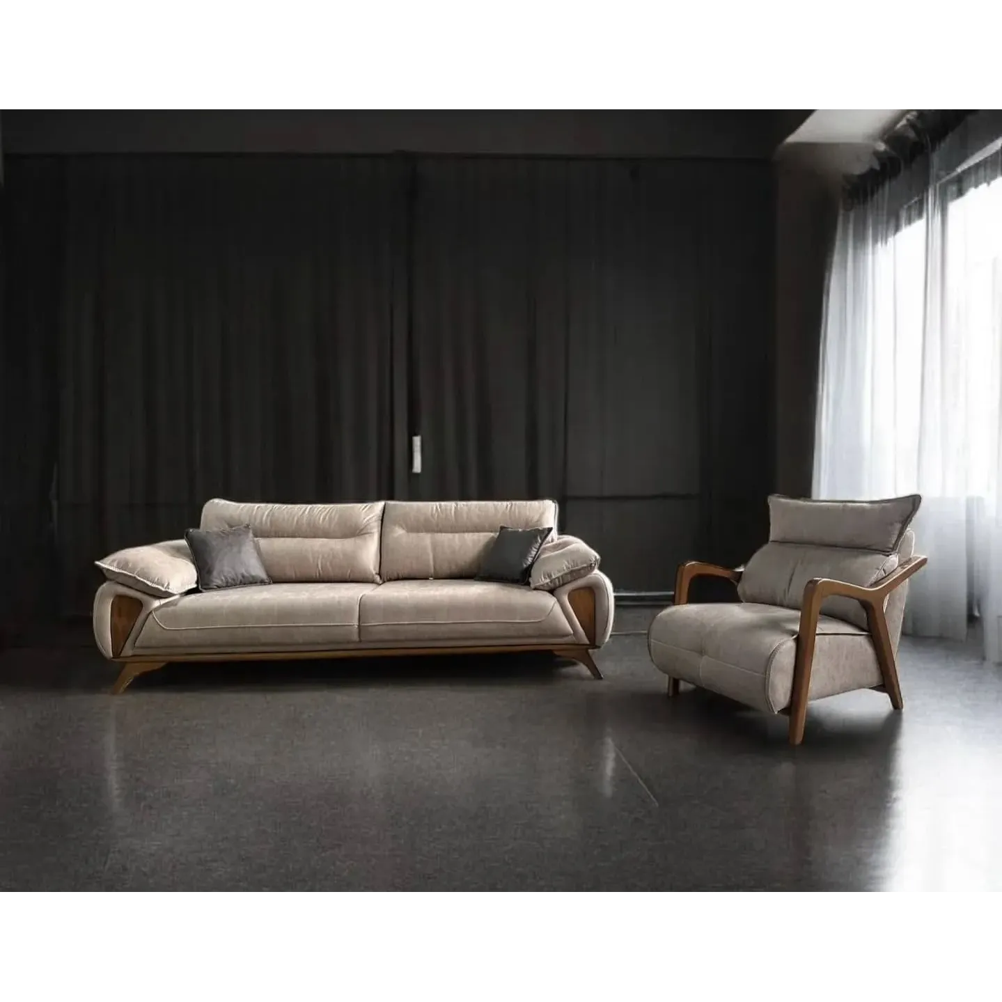 Aurelius Turkish Velvet Sofa with Sculpted Wooden Inlays