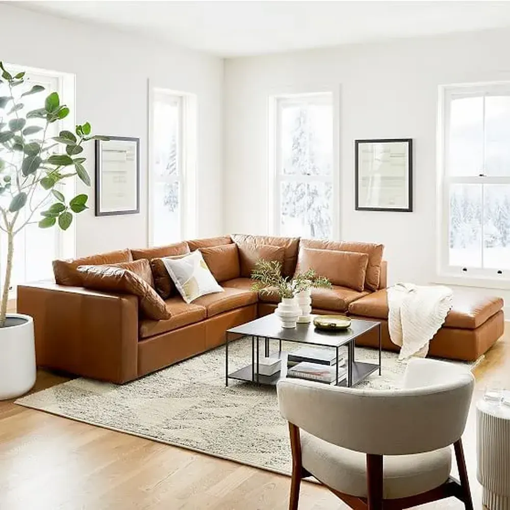 Classic Tan Leather Rite Sectiol with Overstuffed Cushions