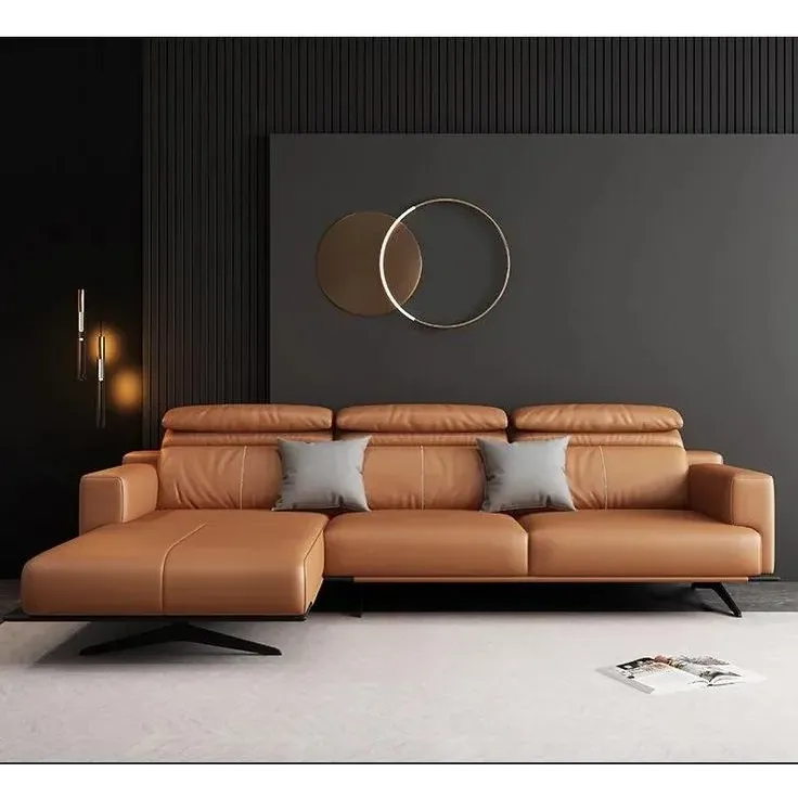 Cogc Brown Leather Rite Sectiol with Adjustable Headrests