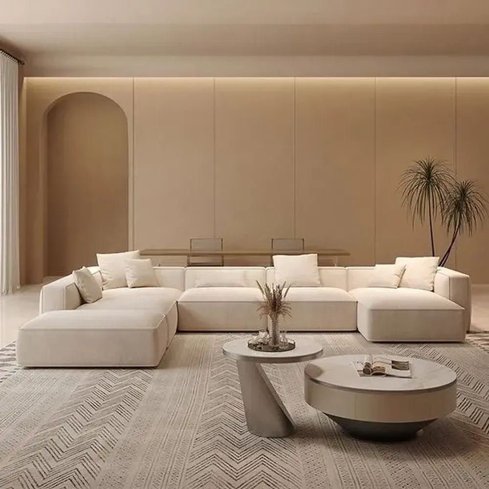 Serene Horizon Beige Velvet Modular U-Sectiol