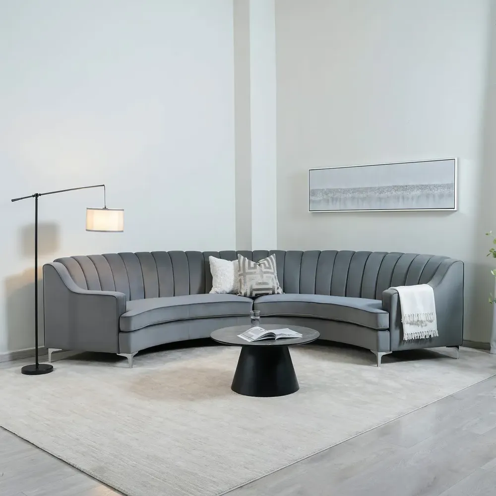 Graphite Cloud Plush Grey Velvet Sectiol