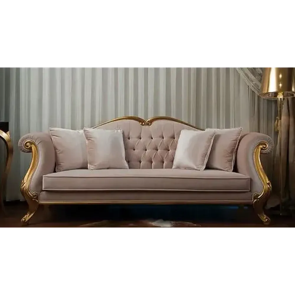 Bosphorus Turkish White Velvet Sofa with Black Lattice Arms