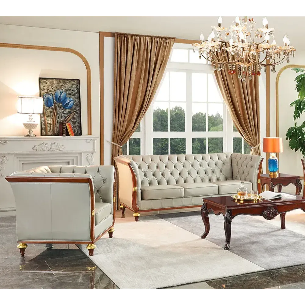 Aristocrat Silver & Grey Tufted Deco Sofa