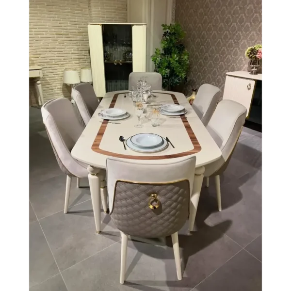 Urban Chic Gold Frame Dining Set with Grey Velvet Tubs
