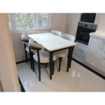 Avant-Garde Ebony Dining Table with Burnt Orange Seating