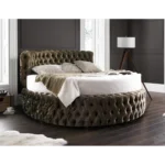 Luxury Turkish Grey & White Fabric Bed with Deco Gold Accents