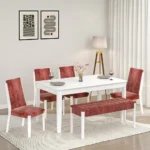 Avant-Garde Ebony Dining Table with Burnt Orange Seating