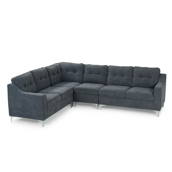 Charcoal Grey L-Shaped Sectiol Sofa with Silver Chrome Legs – Modern Comfort