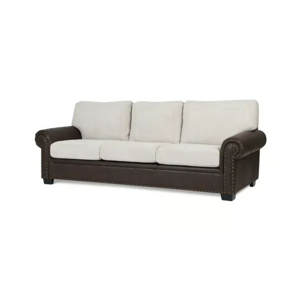 Transform your interior with the uniquely crafted Marble Table Set Classic Dark Brown Leather-Rite Sofa. The ensemble is paired with a heavy-duty round white marble coffee table, blending traditiol comfort with high-end materials for a sophisticated look.. This classic living room set features a sturdy sofa upholstered in dark brown leather-rite with soft white fabric seating An essential addition to your furniture collection.