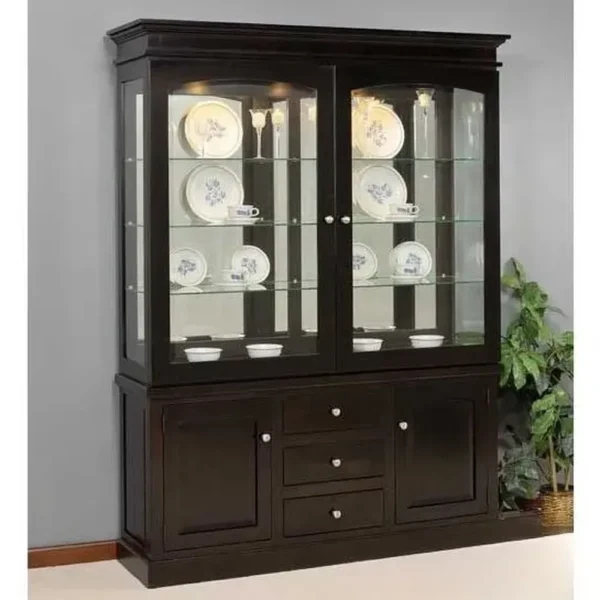 The Classic Dark Brown Wooden Showcase with Glass Cabinetry and Storage Drawers is designed to bring a touch of class to any home. The upper section features transparent glass doors and shelves, while the lower base provides functiol storage with three smooth-gliding drawers and two spacious side cabinets. A timeless addition to any dining or living area, this classic showcase offers ample space to display fine chi and collectibles. The dark wood finish adds a regal touch to traditiol home interiors. A perfect blend of form and function for the modern home.