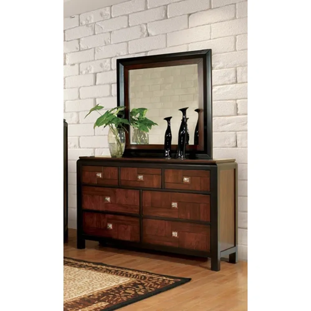 The Sophisticated Dark Brown Polish Bed with Charcoal Grey Fabric Headboard is designed to bring a touch of class to any home. This modern half-polish bed features a rich dark brown finish and a comfortable charcoal grey fabric headboard. The clean, udorned lines of the frame and matching dresser set make it an ideal choice for those who appreciate contemporary minimalism with a warm, organic feel. Built with quality materials to ensure lasting durability and style.