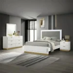 The Sophisticated Dark Brown Polish Bed with Charcoal Grey Fabric Headboard is designed to bring a touch of class to any home. This modern half-polish bed features a rich dark brown finish and a comfortable charcoal grey fabric headboard. The clean, udorned lines of the frame and matching dresser set make it an ideal choice for those who appreciate contemporary minimalism with a warm, organic feel. Built with quality materials to ensure lasting durability and style.