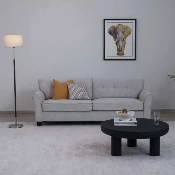 Classic Grey Fabric Sofa with Jute Accents & Black Trim – 3-Seater Design