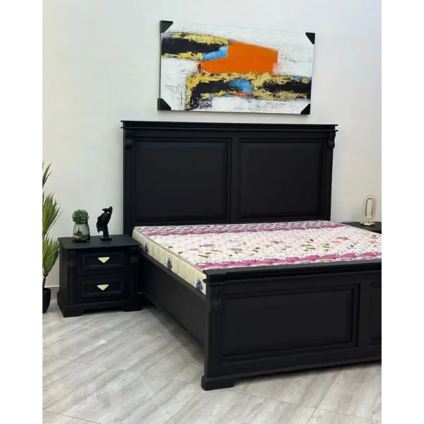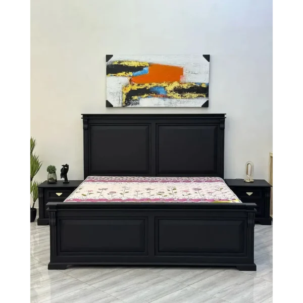 Make a bold statement with this classic midnight black deco bed. Featuring heavy architectural paneling on both the headboard and footboard, this set brings a sense of permanence and timeless style to any room.