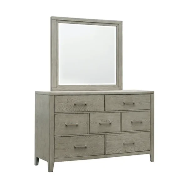 Elevate your living space with the Classic Minimalist Polish Fabric Bed in Dark Brown and Grey. Achieve a balanced look with this classic half-polish bed. The headboard features clean vertical fabric panels framed by rich dark brown wood. This set includes a matching dresser and nightstand, providing a serene and organized atmosphere. Built with quality materials to ensure lasting durability and style.
