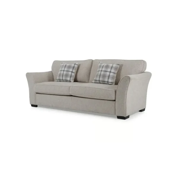 Transform your interior with the uniquely crafted Classic Three-Seater Jute Fabric Sofa with Plaid Accent Pillows. Upholstered in a high-quality jute-style fabric, it features soft curves and supportive seating. The included plaid pillows add a touch of traditiol charm to the crisp white and brown palette.. This timeless three-seater sofa offers a blend of durability and comfort A perfect blend of form and function for the modern home.
