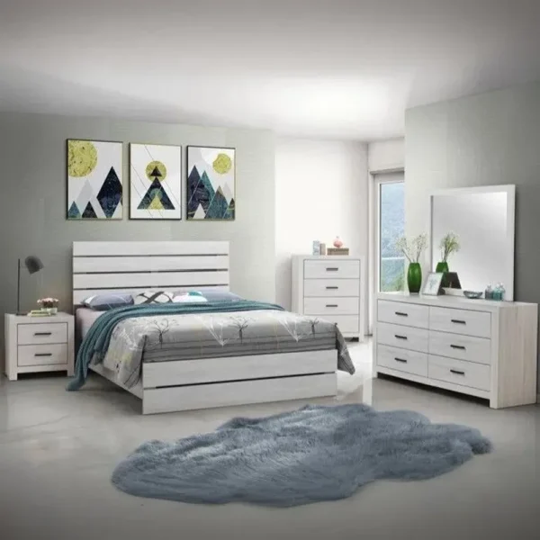 Classic White Lamited Bedroom Set with Slatted Headboard