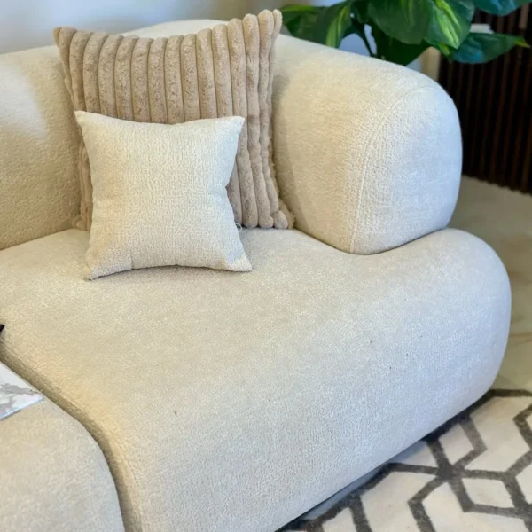 Embrace maximum comfort with this cloud-inspired modular sofa. Its soft white fabric and rounded edges create an inviting, airy space perfect for modern relaxation.
