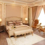 Sophisticated Light Brown Solid Wood Minimalist King Size Bed