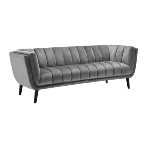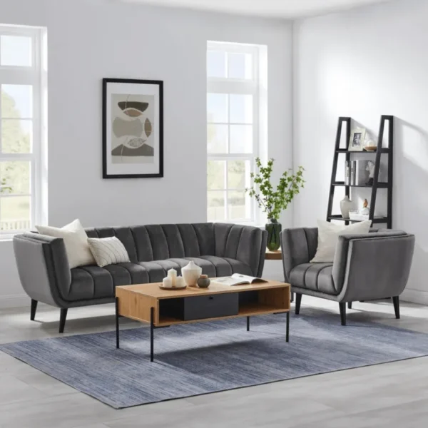 Contemporary Grey Velvet Fluted Sofa & Armchair Living Room Set – Modern Luxury