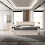 Luxury Turkish Grey & White Fabric Bed with Deco Gold Accents