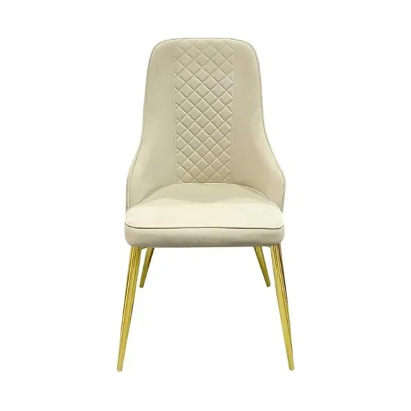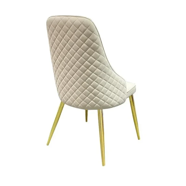 Cream White Leatherette Dining Chair with Diamond Quilted Back & Gold Legs
