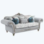 Elegant Turkish Off-White Velvet Sofa & Wingback Chair Set – Modern Luxury