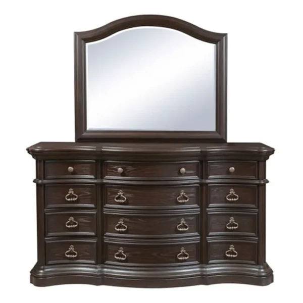 - Hand-carved dark brown polish frame